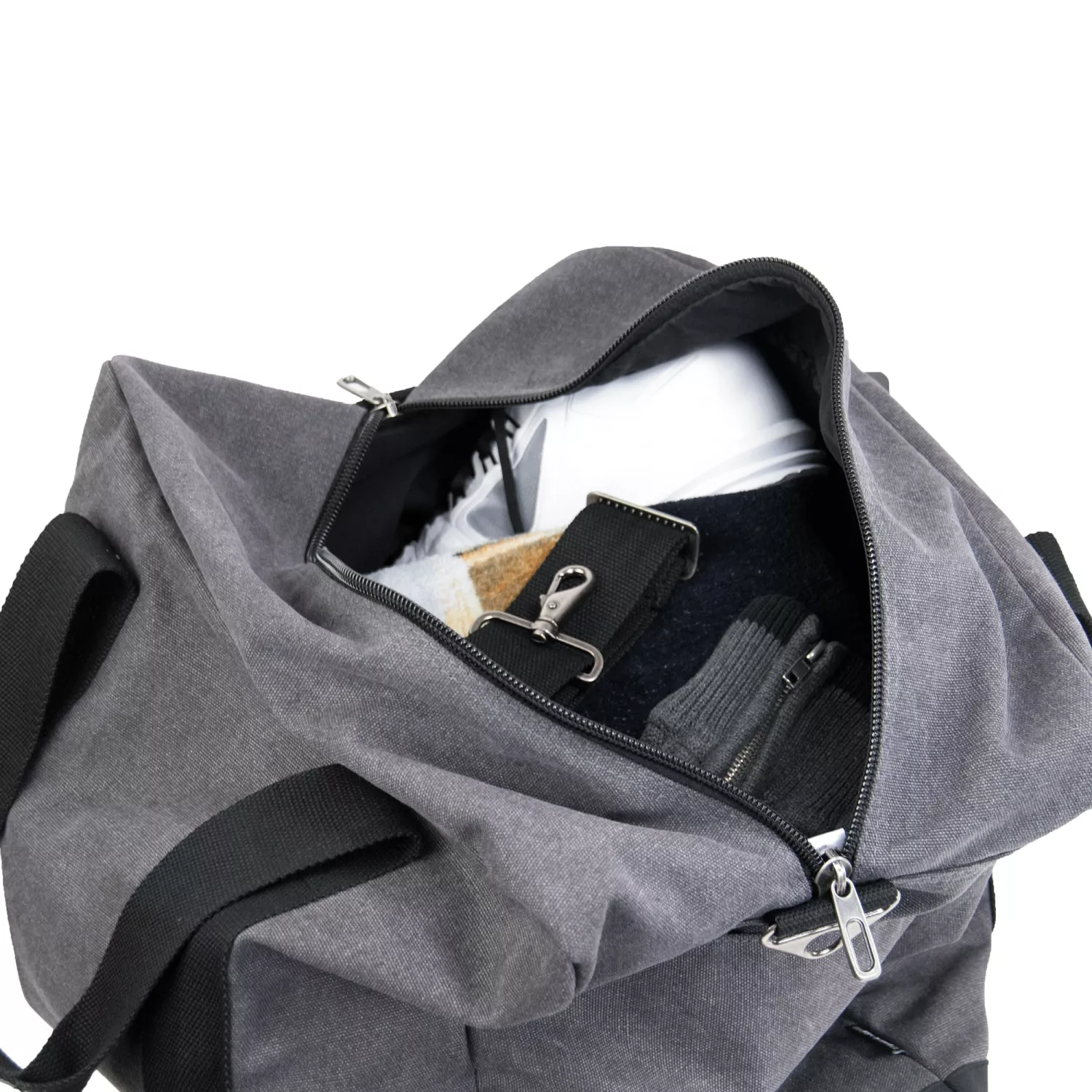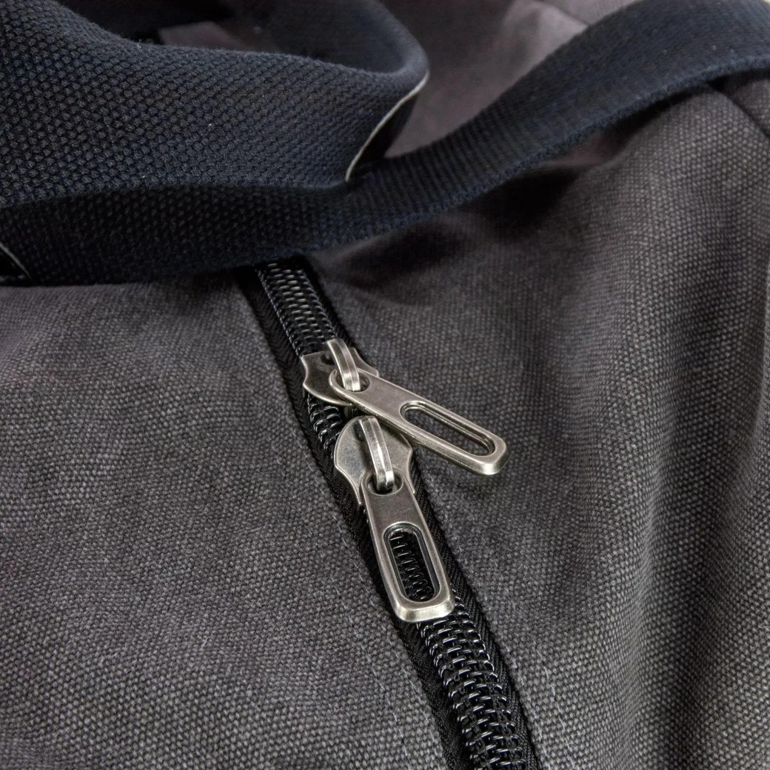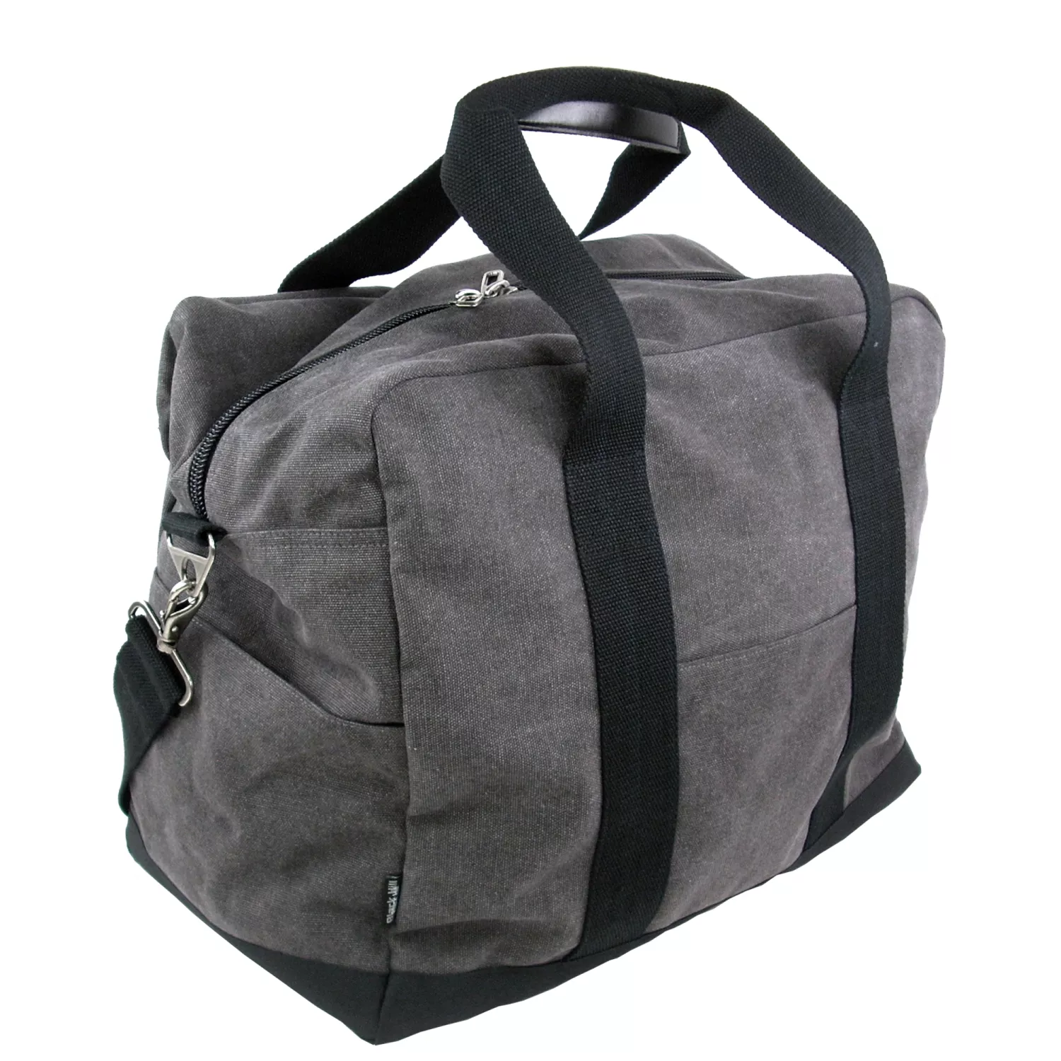 Brooklyn från Black Hill är en stor och fin väska i kraftig canvas, den passar perfekt för både sport, weekendresan och fritiden. Väskan har en värdeficka, samt ett fint tygfoder på insidan och två öppna fickor på utsidan. Väskan har breda remmar på det avtagbara axelbandet med metallspännen och metallclips. Väskan har även starka fina bärhandtag med detaljer i PU-läder för extra komfort. Väskan är i mörkgrå färg och har svart botten i 600D polyester. En mycket rymlig, mjuk och följsam väska med många användningsområden.
