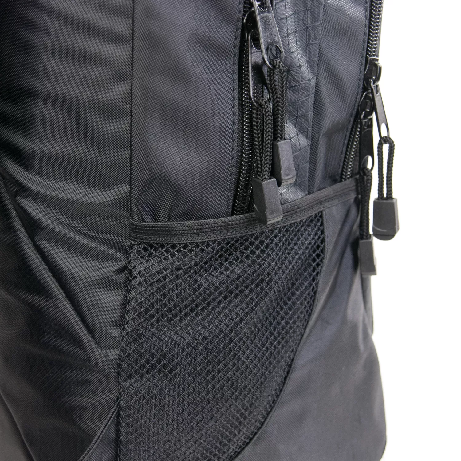 The backpack have a nice 420D polyester and ripstop material mix for a nice approach. The bottom is made in strong, heavy 1680D polyester and the shoulder straps and the back is nicely padded so that it is comfortable to wear. It is also equipped with a carrying handle, open pockets on the sides with elastic bands at the opening and a large front zipper pocket with small pockets inside.