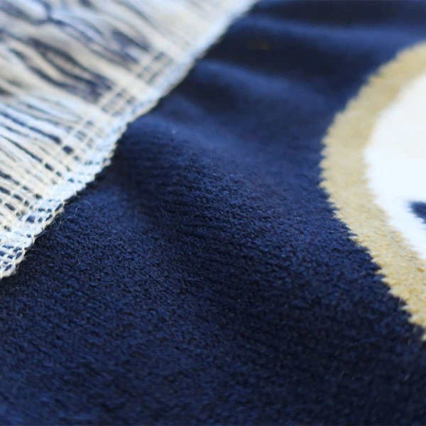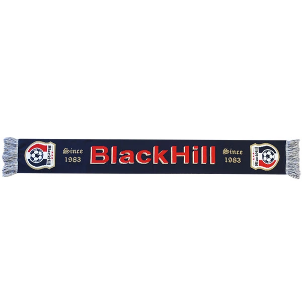 Round knitted acrylic scarf with embroidered pattern / logo