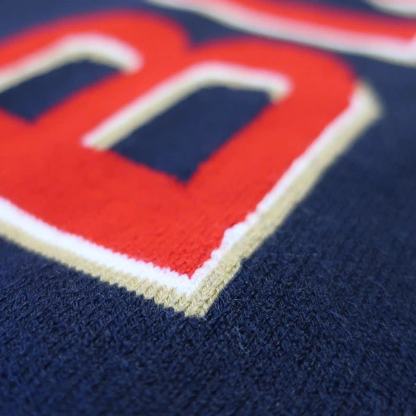 Knitted acrylic hat with embroidered pattern / logo