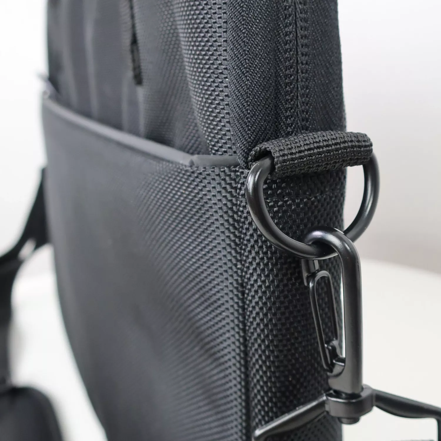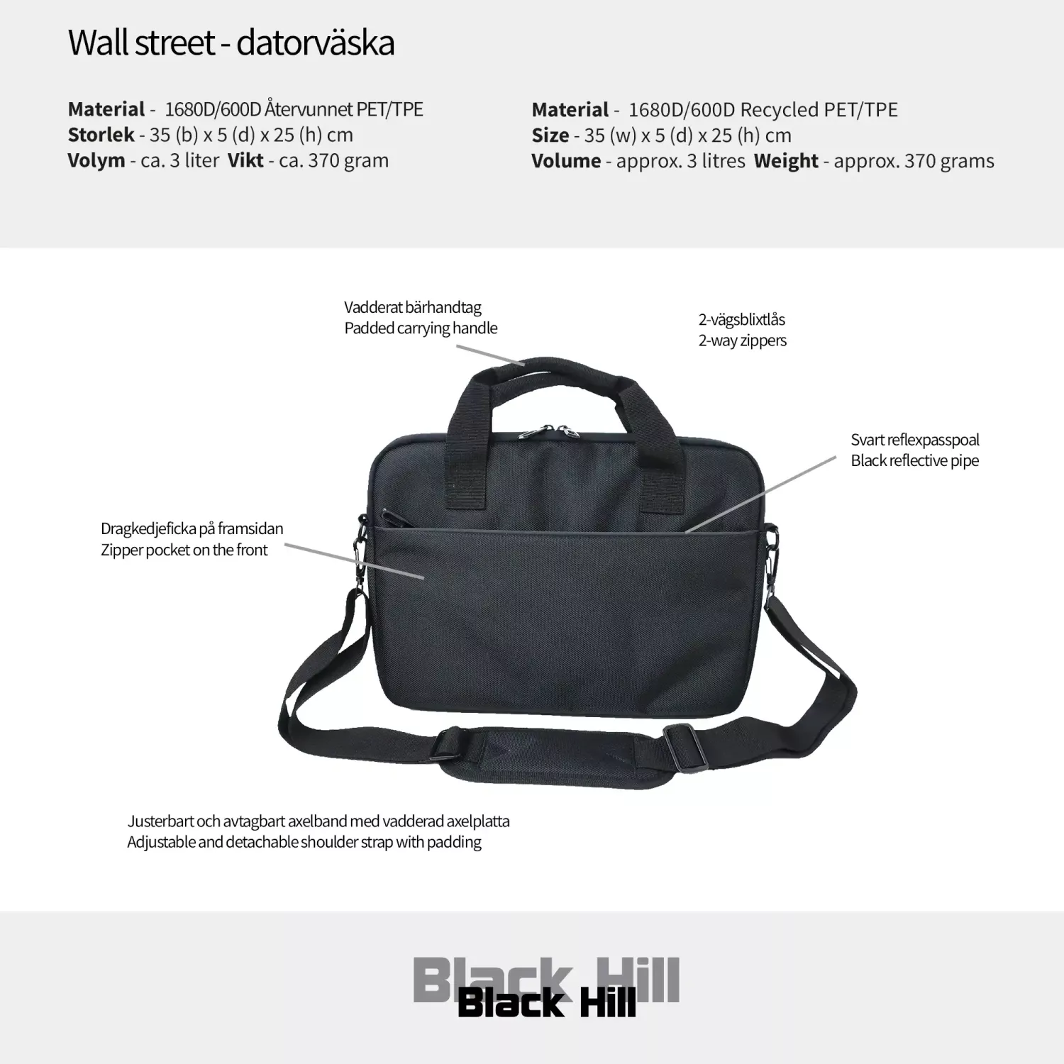 En laptopväska skapad och anpassad för dig som ställer höga krav på funktion. Materialet är tillverkad av återvunna PET flaskor. Väskan är smidigt formad och har plats för din laptop och arbetsmaterial. Är du ute i trafiken hjälper den svarta passpoalen, som är tillverkat i ett reflexmaterial, till att du syns i mörkret.