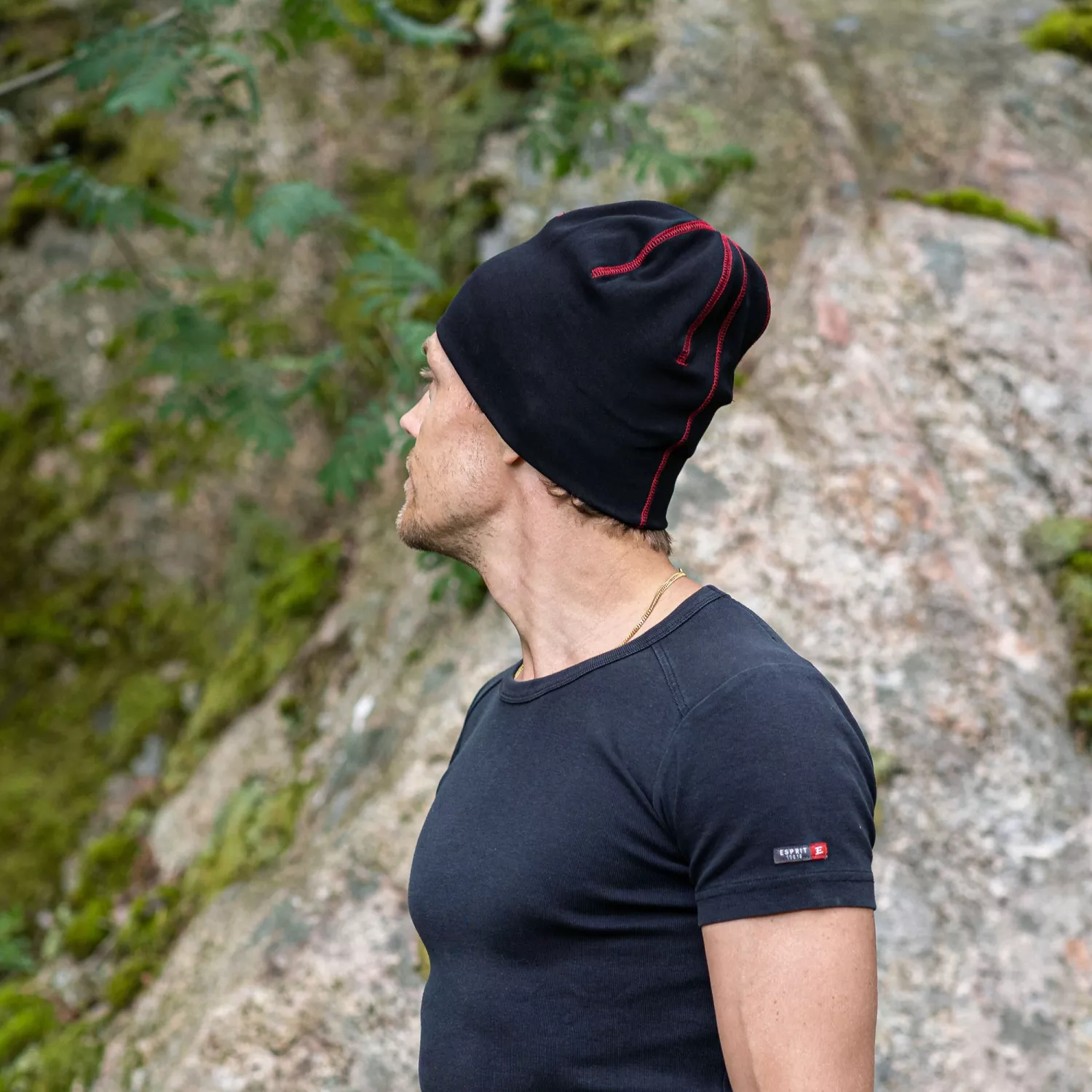 Fairtrademössa i 95% bomull och 5% elastan med kontrastsömmar av hög kvalitet från Black Hill.